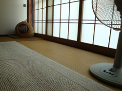 こうして安い借家に 安物の扇風機、安物のマット