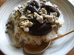 昨日の残りを 熱々ご飯に 冷えた煮汁ごとたっぷりかけて