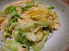 春きゃべつと卵の ふんわり酢炒め(黒胡椒風味)