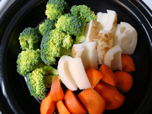 ①大根とじゃがいもを 少量のコンソメスープで蒸し煮
